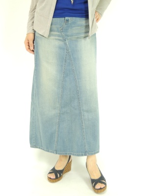 ロングスカートにはコンパクトなトップスを合わせてバランスよく。古着っぽいデニムでこなれたカジュアルに!アクティブ度100%。