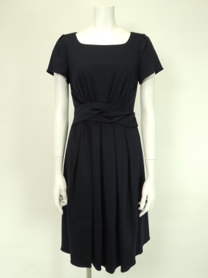 ウエストマークされたフィット&フレアーのワンピにはショート丈のボレロがぴったり!フェミニン度70%、エレガンス度30%。