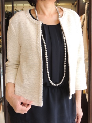 (甘さのある大人のブラックコーデ)パール使いが上品なノーカラージャケットに、繊細なチュールスカートを合わせたエレガントスタイル。軽やかな透け感が、ブラックコーデに柔らかな表情をプラスしてくれます。インナーはシンプルなブラウスですっきりとした印象に。きちん と感がありながら、堅くなりすぎない大人の装い。 | |