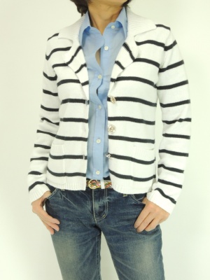 衿付きカーデとシャツで綺麗目にまとめたカジュアルスタイル!アクティブ度70%、スタイリッシュ度30%。
