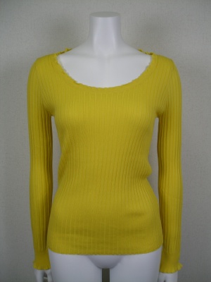 黄色の元気な色が春ですね。大きな花のバングルがアクセントになります。軽やかな装いでお出かけしたくなりますね!フェミニン度100%