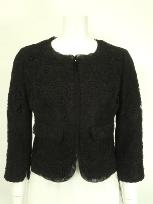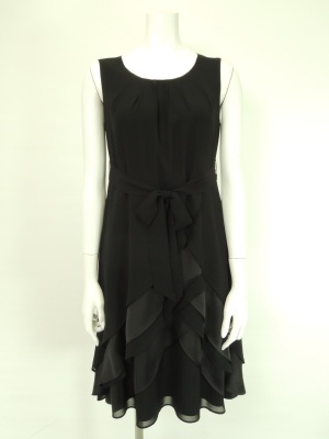 生地が重なり合うエレガントなワンピースにショート丈ジャケットがよく合います。特別な日におススメ!エレガンス度100%。