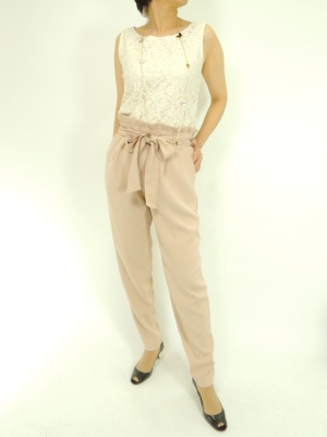 レース使いの華やかなコンビネゾン。ジャケットを羽織るだけで旬の顔に!エレガンス度60%、スタイリッシュ度40%。