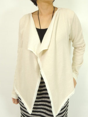 コクーンシルエットのワンピを着流しカーデで優しく包んで!フェミニン度70%、スタイリッシュ度30%。