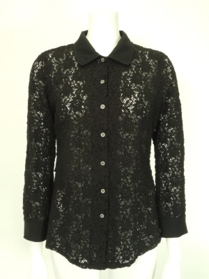 マキシワンピも落ち感のある素材ならタウン仕様に。レースシャツの裾はギュッと結んで!スタイリッシュ度90%、エレガンス度10%。