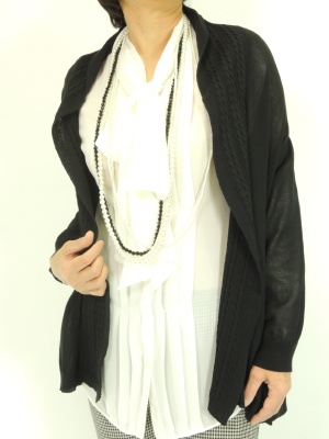 (甘さのある大人のブラックコーデ)パール使いが上品なノーカラージャケットに、繊細なチュールスカートを合わせたエレガントスタイル。軽やかな透け感が、ブラックコーデに柔らかな表情をプラスしてくれます。インナーはシンプルなブラウスですっきりとした印象に。きちん と感がありながら、堅くなりすぎない大人の装い。 | |