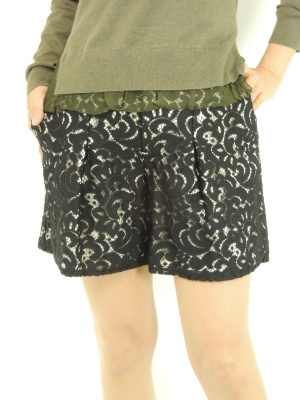 緩めのデイリーカジュアルにも流行のレースを取り入れて。ショートパンツならエレガントすぎずヘルシーな印象です!アクティブ度70%、フェミニン度30%。