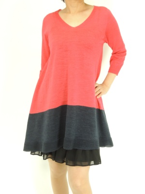 Aラインのチュニックは裾シフォンのキャミソールと合わせてワンピみたいに着こなしても可愛い!フェミニン度90%、アクティブ度10%。