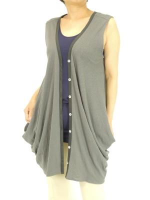 ワンピのボタンを開けてジレとしての活用。ストールを垂らすと縦長効果でさらにスッキリ!スタイリッシュ度80%、アクティブ度20%。