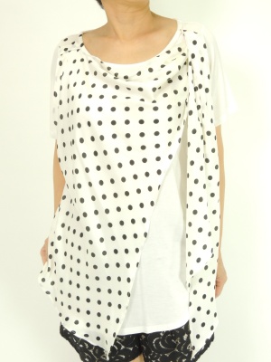 シックになりがちなモノトーンコーデも、ドットとレースでキュートな印象に!フェミニン度80%、スタイリッシュ度20%。
