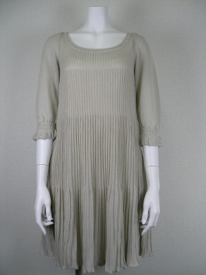 プリーツのデザインが優しいワンピース。ナチュラルな感じをブレスレットでプラスして友達とのランチファッションに!フェミニン度100%。