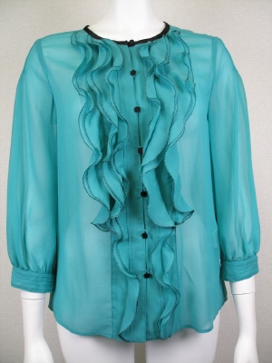 綺麗な色のブラウスは黒と合わせて大人の雰囲気に・・・。ご主人とのデートにお洒落して出かけてみてはいかがでしょう!