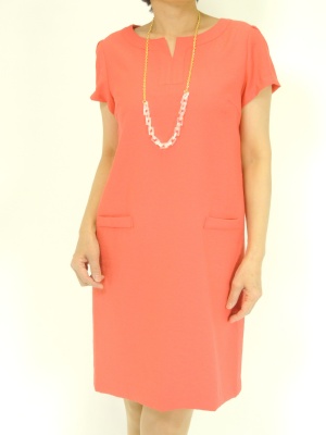 キレイ色のワンピースは着るだけで気分が上がります。夏小物で少しカジュアルダウンしても素敵です!エレガンス度80%、フェミニン度20%。