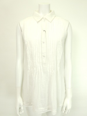 少し長めのノースリーブシャツはショートパンツと合わせて軽やかに!フェミニン度70%、スタイリッシュ度30%。