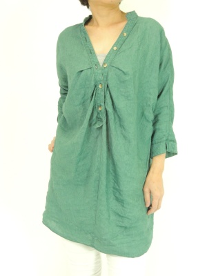 ナチュラルな麻のチュニックとストールを白のパンツでクリーンに着こなして!スタイリッシュ度60%、アクティブ度40%。