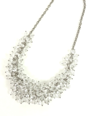 ビジュー付きブラウスやボリュームネックレスでデコルテを華やかに飾った、柄パンツのスタイリッシュなコーディネート!スタイリッシュ度90%、エレガンス度10%。