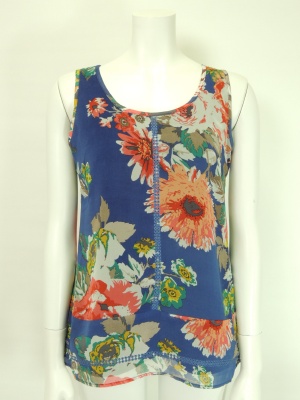 鮮やかな花柄ブラウスはショートパンツでヘルシーに着こなすのもおススメです!フェミニン度70%、アクティブ度30%。