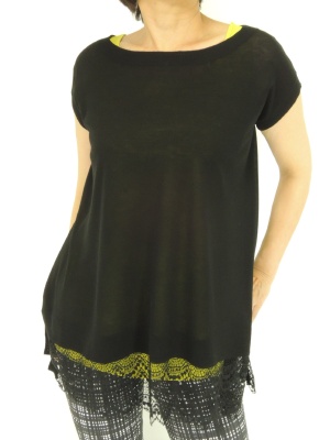 黒系のクールなスタイルもレースや華奢なネックレスでフェミニンな要素をプラスすると、夏らしい軽やかさを演出できます!フェミニン度60%、スタイリッシュ度40%。