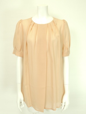 チュニックブラウスをスカートに合わせて。裾をインすれば上品スタイルの完成です!エレガンス度60%、フェミニン度40%。