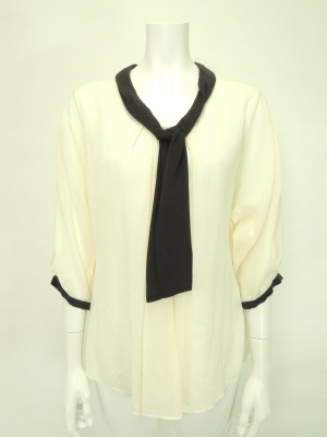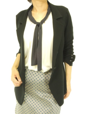 エレガントなブラウスにダブルのジャケットを羽織ると、丁度良い甘辛MIXに!スタイリッシュ度60%、エレガンス度40%。