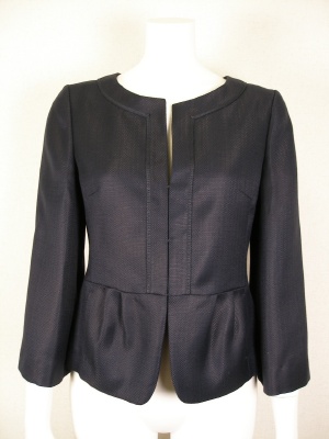 ネイビーとベージュはオフィスでも安心な組み合わせ。でも硬くなりすぎないよう、インナーは軽いシフォンで!スタイリッシュ度80%、エレガンス度20%。