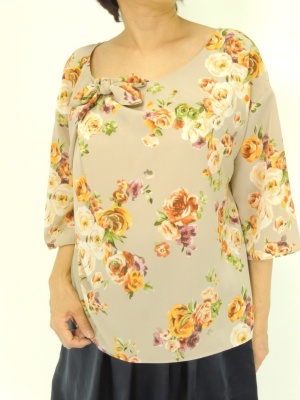 ロマンチックな花柄ブラウスとバルーンスカートの甘口コーデ。膝上丈のスカートならふんわりシルエットでもバランスがとれますよ!フェミニン度100%。