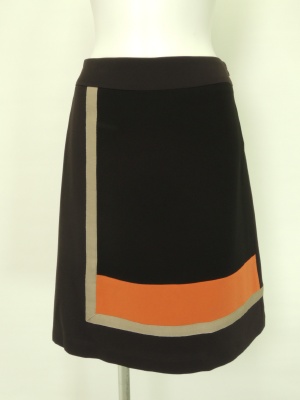 シックな色使いが秋らしいレトロなスカート。カラーブロックの一色をトップスとリンクさせて!フェミニン度70%、エレガンス度30%。