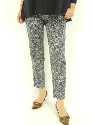 ネイビーのコーディネートはこの秋大注目です。異素材カットソーや柄パンツなどの流行アイテムが上品にまとまる!フェミニン度60%、スタイリッシュ度40%。
