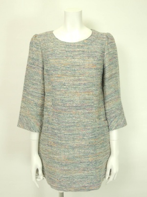 チュニックはパンツを合わせてももちろん可愛いのですが、短めのスカートでワンピ風に着こなすのもお薦めです!エレガンス度60%、フェミニン度40%。