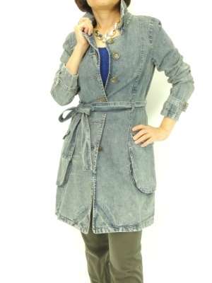 ハードなイメージのデニムのコートはレースのインナーで綺麗目に着こなしたい!スタイリッシュ度70%、アクティブ度30%。