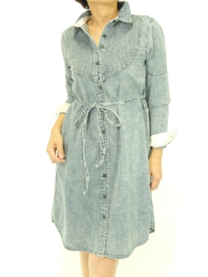 ガーリーなデニムワンピはストールとヒールスニーカーで大人カジュアルに!フェミニン度60%、アクティブ度40%。