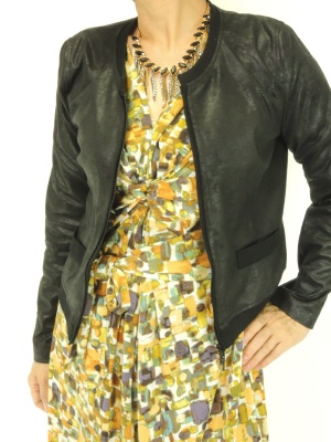 女性らしいラインのワンピースにはあえてブルゾンタイプのジャケットを合わせると素敵です!エレガンス度60%、スタイリッシュ度40%。