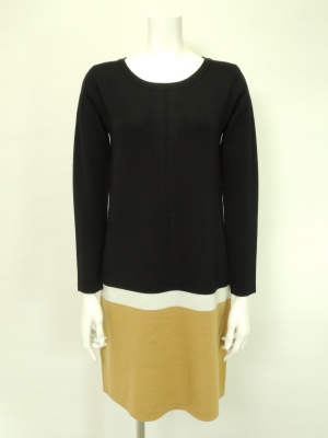 配色ワンピには大ぶりネックレスがお似合い。シンプルコーデでシックな印象に!エレガンス度70%、スタイリッシュ度30%。