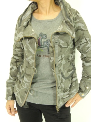 迷彩パーカを思いっきりカジュアルにコーディネート。でも色はグレー〜黒でシックにまとめるのがポイント!アクティブ度100%。