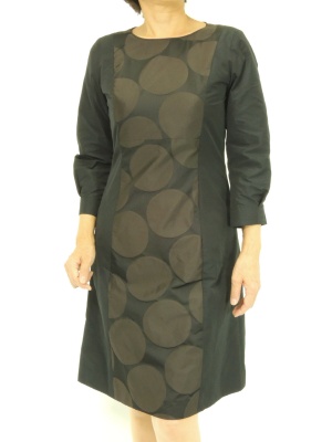 お出かけに着ていきたい黒のワンピース。大きなドット柄にアクセサリーのミンクファーがさりげなくリンク!エレガンス度80%、フェミニン度20%。