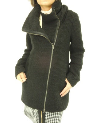 ボリュームのあるコートにはタイトスカートがよく似合います。ロングネックレスとスカートのジッパーで縦ラインを強調して!スタイリッシュ度60%、エレガンス度40%。