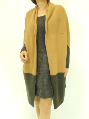 ルーズなカーデを羽織るとフェミニンワンピも少し辛口に見えます。アクセサリー感覚のポシェットをアクセントに!エレガンス度70%、スタイリッシュ度30%。