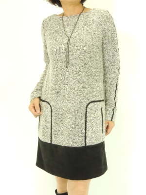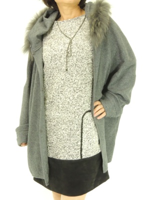 サックワンピはファーやフェミニンな小物で女らしく着こなして!エレガンス度60%、フェミニン度40%。