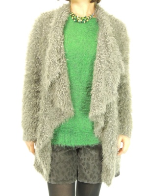 カーディガンにはベルトをプラスしてボリュームを調節すると、ショートパンツスタイルが大人っぽくまとまります!スタイリッシュ度80%、フェミニン度20%。
