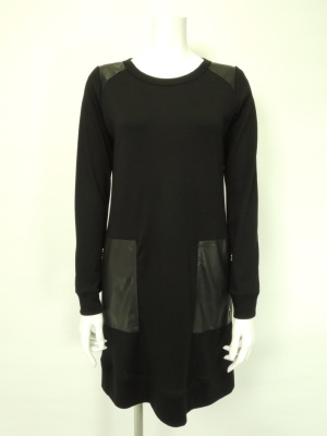 フェイクレザーでアクセントを付けたクールなワンピース。上質なカシミヤストールでソフトに仕上げて!スタイリッシュ度90%、フェミニン度10%。