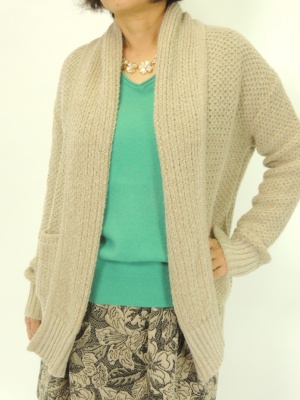 ニットのコーディネートもペンシルスカートならカジュアルすぎません。ロングカーデでIラインを作りつつ腰回りをカバーして!スタイリッシュ度70%、エレガンス度30%。