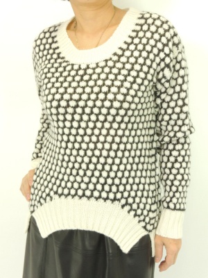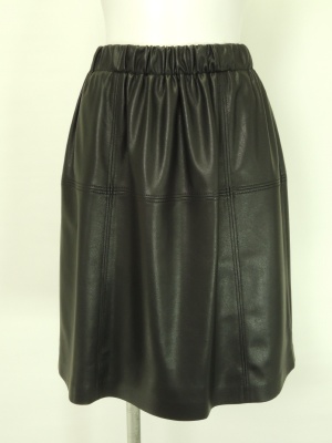 ざっくりニットはフェイクレザースカートやエナメル靴でクールな質感をプラスすると旬のお洒落に!フェミニン度60%、スタイリッシュ度40%。