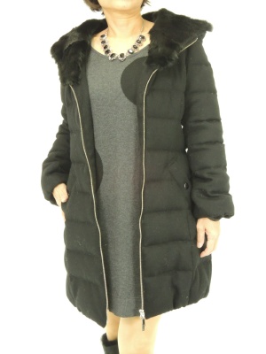 ニットワンピとダウンの冬らしいお出かけコーデ。細身のシルエットでまとめるとエレガントな雰囲気に!エレガンス度60%、スタイリッシュ度40%。