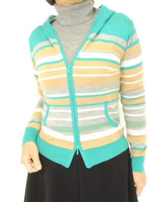 キレイ色のマルチボーダーのニット素材ならパーカもフェミニンな印象に。コンパクトなデザインなのでサーキュラースカートともよく合います!フェミニン度80%、スタイリッシュ度20%。