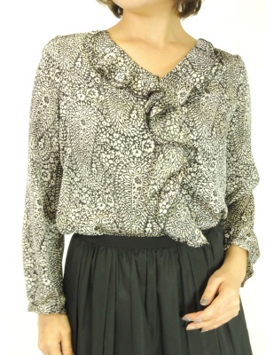 エレガントなフリルブラウスをポイントにしたシックなお出かけコーデ。カーディガンは肩かけすると雰囲気がでます!エレガンス度70%、フェミニン度30%。