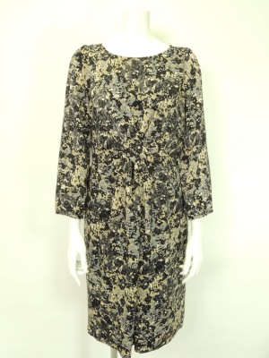 柄ワンピはロングカーディガンを羽織ってシックに!エレガンス度90%、スタイリッシュ度10%。