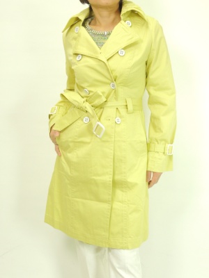 春らしいイエローとグリーンのコーディネート。コートを明るい色にすると一気に春モードに!スタイリッシュ度90%、フェミニン度10%。