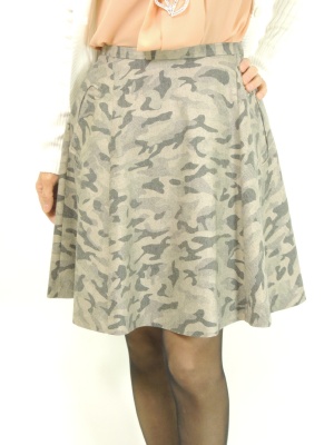 フェミニンなコーディネートは迷彩柄で少しカジュアルに見せるとこなれた感じに!フェミニン度80%、スタイリッシュ度20%。