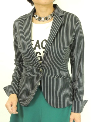 マニッシュなテーラードジャケットにはフェミニンなボトムスを合わせたい。サーキュラースカートなら可愛くカッコよく決まる!スタイリッシュ度80%、フェミニン度20%。