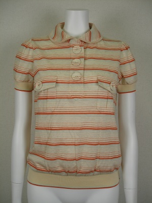 オレンジの色がキュートなポロカットソーをナチュラル色でコーディネート。春のお出かけに楽しくなる組み合わせですね!フェミニン度100%。